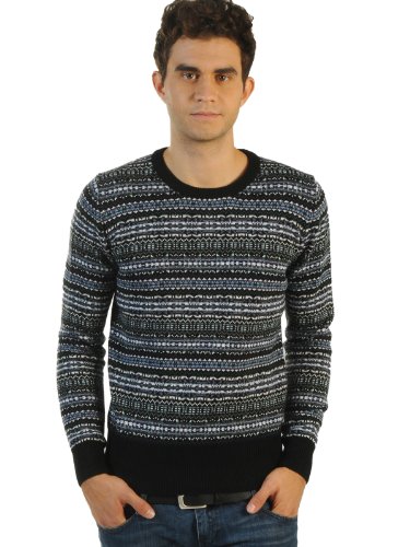 Eleven Paris Cyma Pull en maille (L, noir)?Pull en maille décontracté de Eleven Paris, Encolure arrondie, Finitions bord-côte larges noires, avec un beau motif norvégien élégant, avec un col roulé supplémentaire, Coupe classique, Longueur taille M env. 66 cm