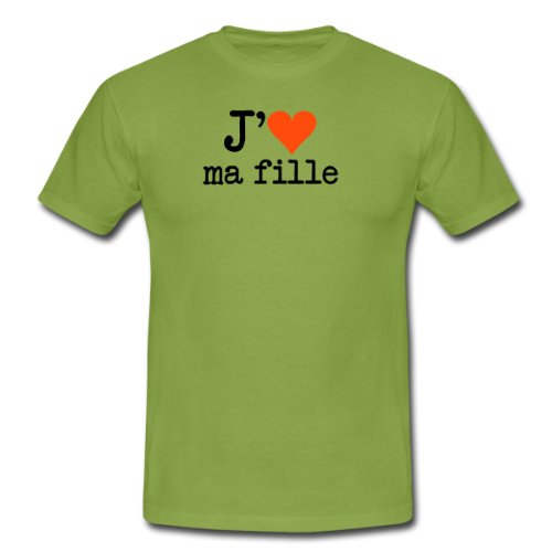 Spreadshirt, Tee shirt classique Homme, vert mousse, L?j'aime ma fille Hommes, blanc. Le classique: ce tee shirt pour hommes à coupe droite est composé de coton filé pré-rétréci. La double couture en bas des manches, à la base et au col, garantit sa qualité et sa bonne finition. Confort garanti. Grammage: 190g/m². Composition 100% coton. Après confirmation de commande nous imprimons le produit individuellement pour toi. Ainsi, nous fabriquons des pièces uniques qui font vraiment plaisir à nos clients et soit dit en passant, nous préservons l''environnement.