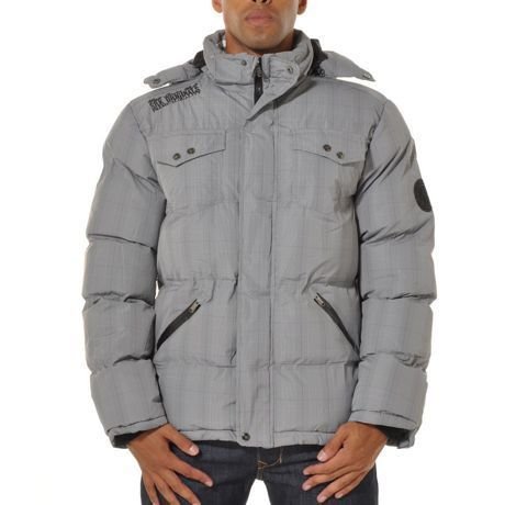 #Doudoune a carreaux avec capuche amovible 2 poches poitrine avec rabat ferme a l'aide de pressions gravees Poches laterales fermees par un zip passepoile Badge "SRK Ltd" manche gauche au porte et broderie epaule droite "SRK Originals" Composition : 100% polyester Lavage recommande en machine a 30