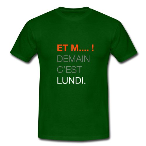 Spreadshirt, Demain c'est Lundi, Tee shirt classique Homme, vert bouteille, M